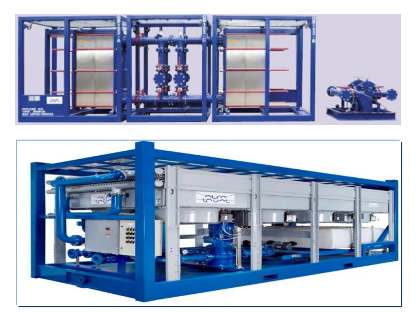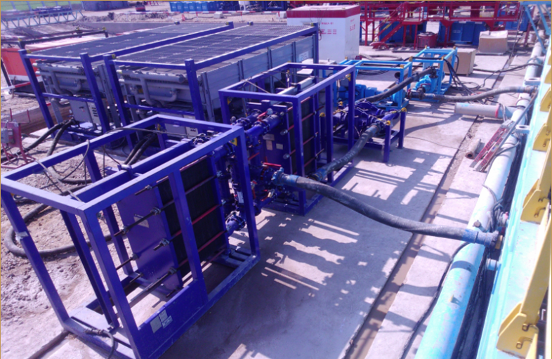 We provide an efficient, modular mud cooling system for use in all kinds of offshore drilling rigs that do not have access to sufficient quantities of cooling water.